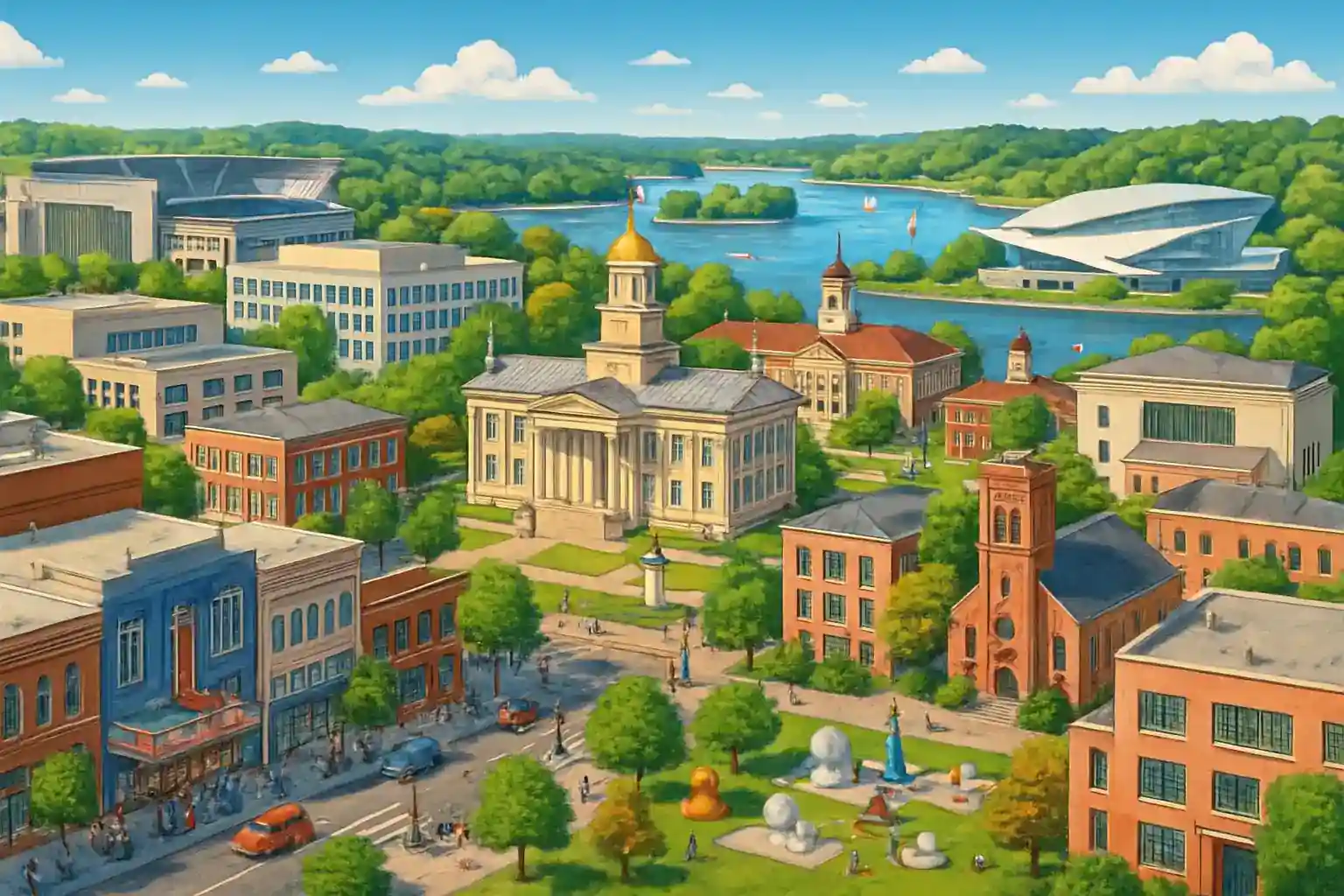 Iowa City är hem för University of Iowa och en livfull universitetsstad vid Iowa River, känd för sin litterära historia som UNESCO City of Literature. Tre biluthyrare i centrum ger dig flexibilitet att utforska både stad och omgivningar. University of Iowa campus ligger bara 10 minuters promenad från stadens centrum, och Coralville Lake med rekreationsområden nås på 15 minuters körning norrut.