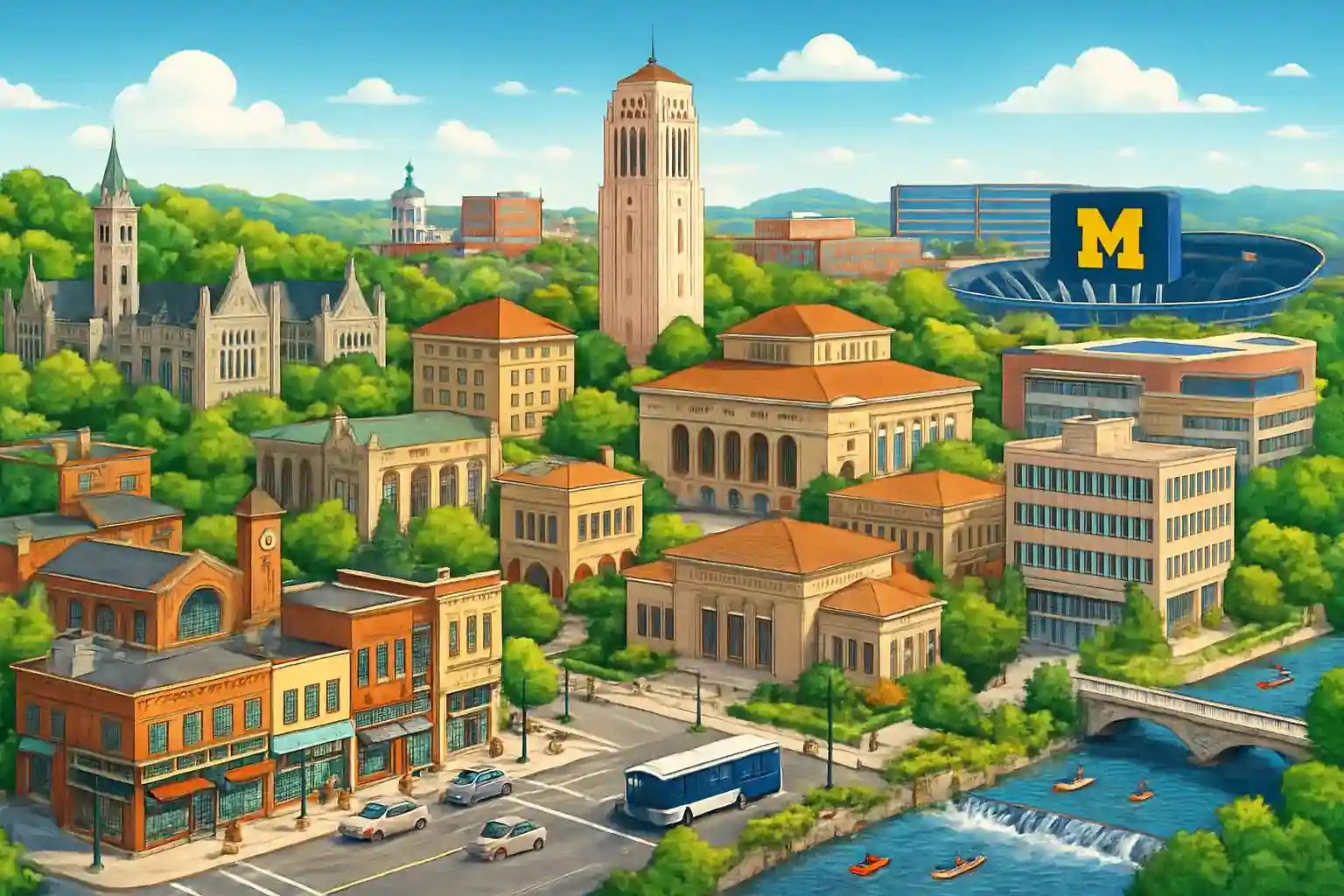 Väg US-23 norrut tar dig snabbt in i staden och vidare mot Ypsilanti eller Saline. Boka hyrbil i god tid – med bara en uthyrare på ARB kan tillgången vara begränsad under högsäsong. Överväg att hämta bilen i Ann Arbors centrum om du behöver fler alternativ.
