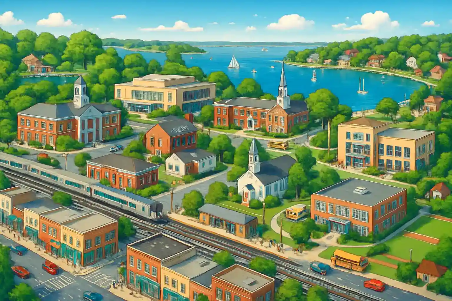 Great Neck är känt för sina eleganta villakvarter och ligger direkt vid Long Island Sound med utsikt mot Connecticut. Från centrum är det bara 5 minuter till Great Neck LIRR-stationen, varifrån pendeltåg går till Penn Station på 45 minuter. Nearby ligger Steppingstone Park & Marina, perfekt för en paus under bilresan.
