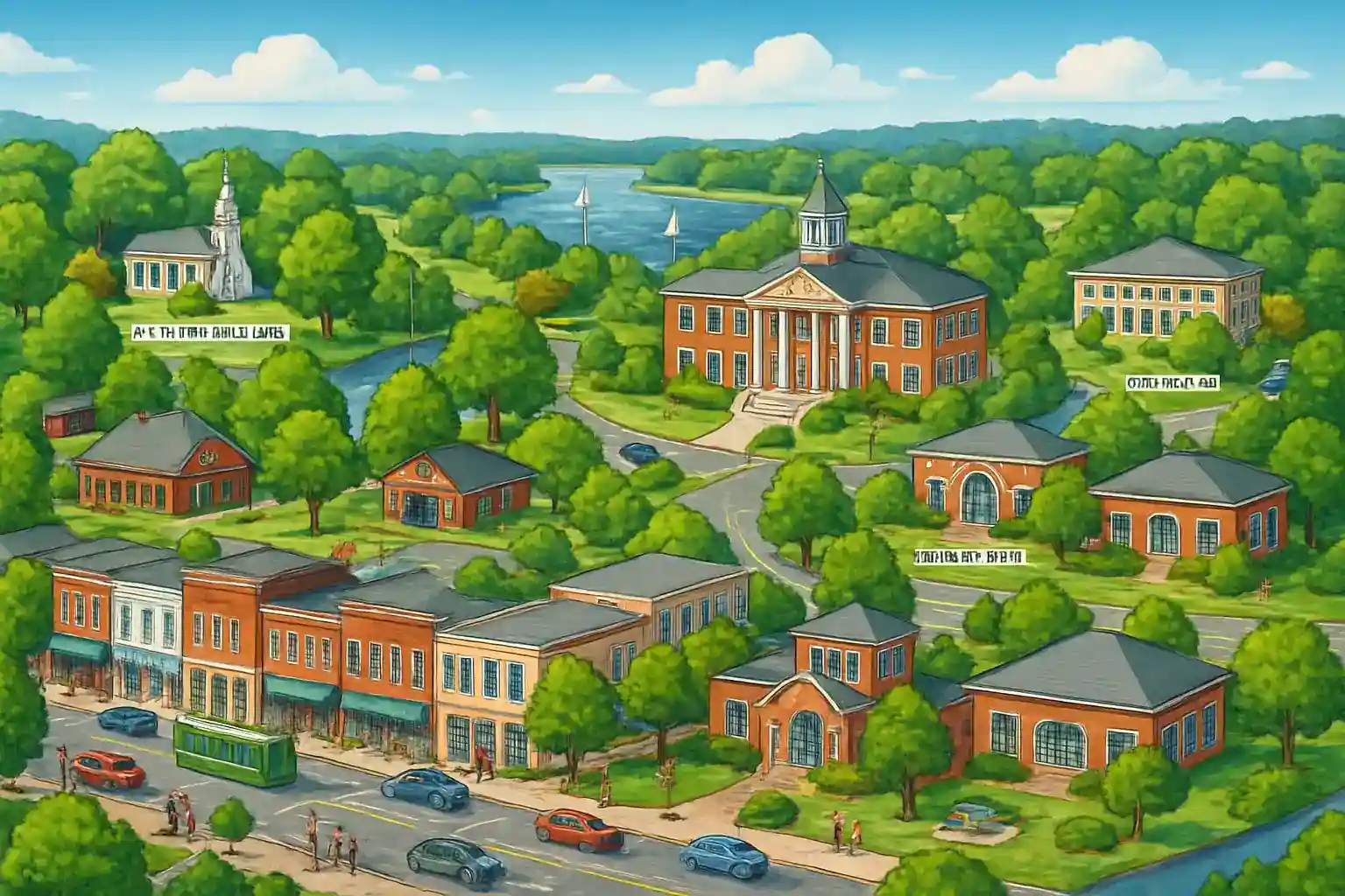 Apex ligger i Wake County och kallas ofta 'The Peak of Good Living' – en titel staden vunnit flera gånger som bästa plats att bo i USA. Centrum kantas av historiska byggnader längs Salem Street och lokala restauranger som gör staden till mer än bara ett genomfartsstopp. Hyr bil tidigt på dagen för att undvika rusningstrafiken på US-1 mot Raleigh.