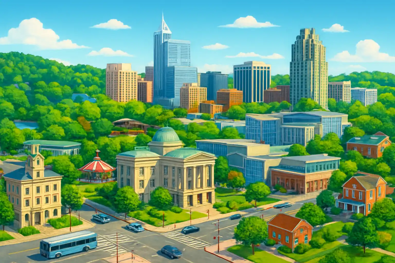 Ca 15–18 km via I-440 och I-40, vilket tar ungefär 20 minuter utan trafik. Är det enklare att hyra bil i Raleigh norr än i centrum? Parkering är lättare och trafiken lugnare, men urvalet är mindre med bara 2 uthyrare jämfört med 5 i centrum.