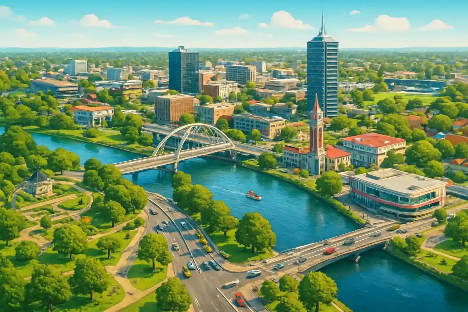 Norrut längs I-75 når du Dayton på knappt femtio minuter, med besök vid det imponerande National Museum of the United States Air Force som ett självklart stopp.