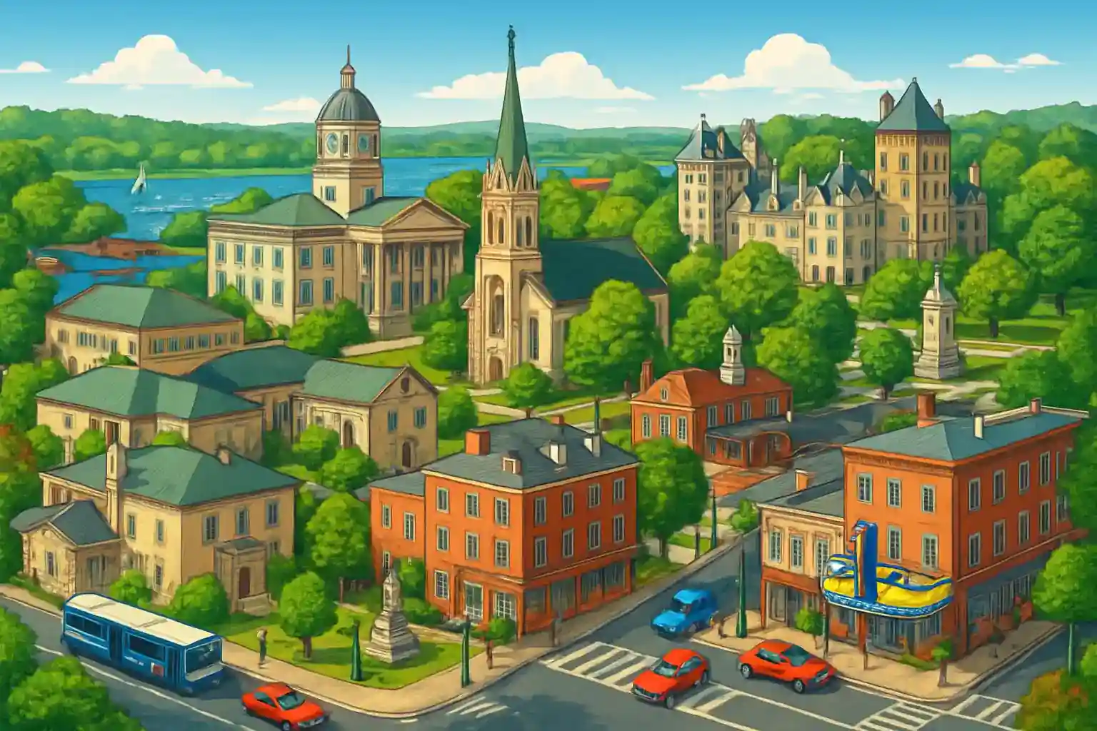 Doylestown är Bucks Countys charmiga huvudstad, belägen cirka 50 km norr om Philadelphia och 120 km söder om New York. Med hyrbil från Doylestown centrum når du enkelt Bucks County Wine Trail, New Hope och Delaware River på under 30 minuter. Staden är känd för Mercer Museum och Fonthill Castle, båda inom gångavstånd från centrum.