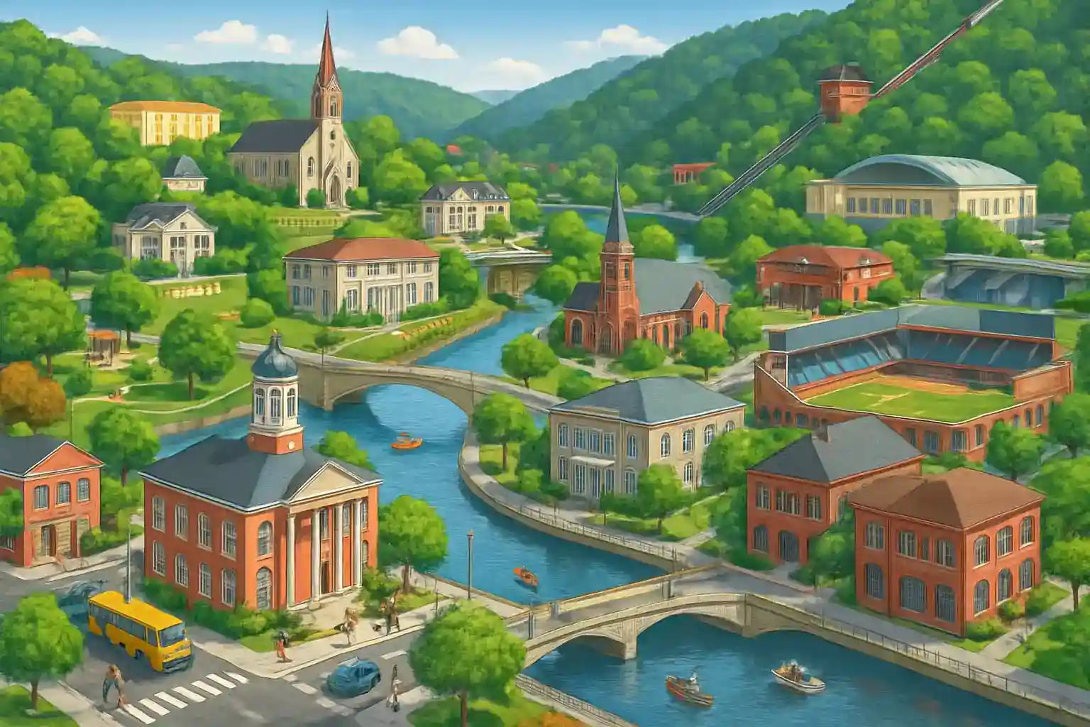Johnstown Inclined Plane, världens brantaste funicular, ligger 10 minuter norrut. Hur långt är det från Geistown till Pittsburgh? Pittsburgh ligger 145 km västerut via Route 219 och I-76 (Pennsylvania Turnpike), ungefär 1 timme 45 minuter.