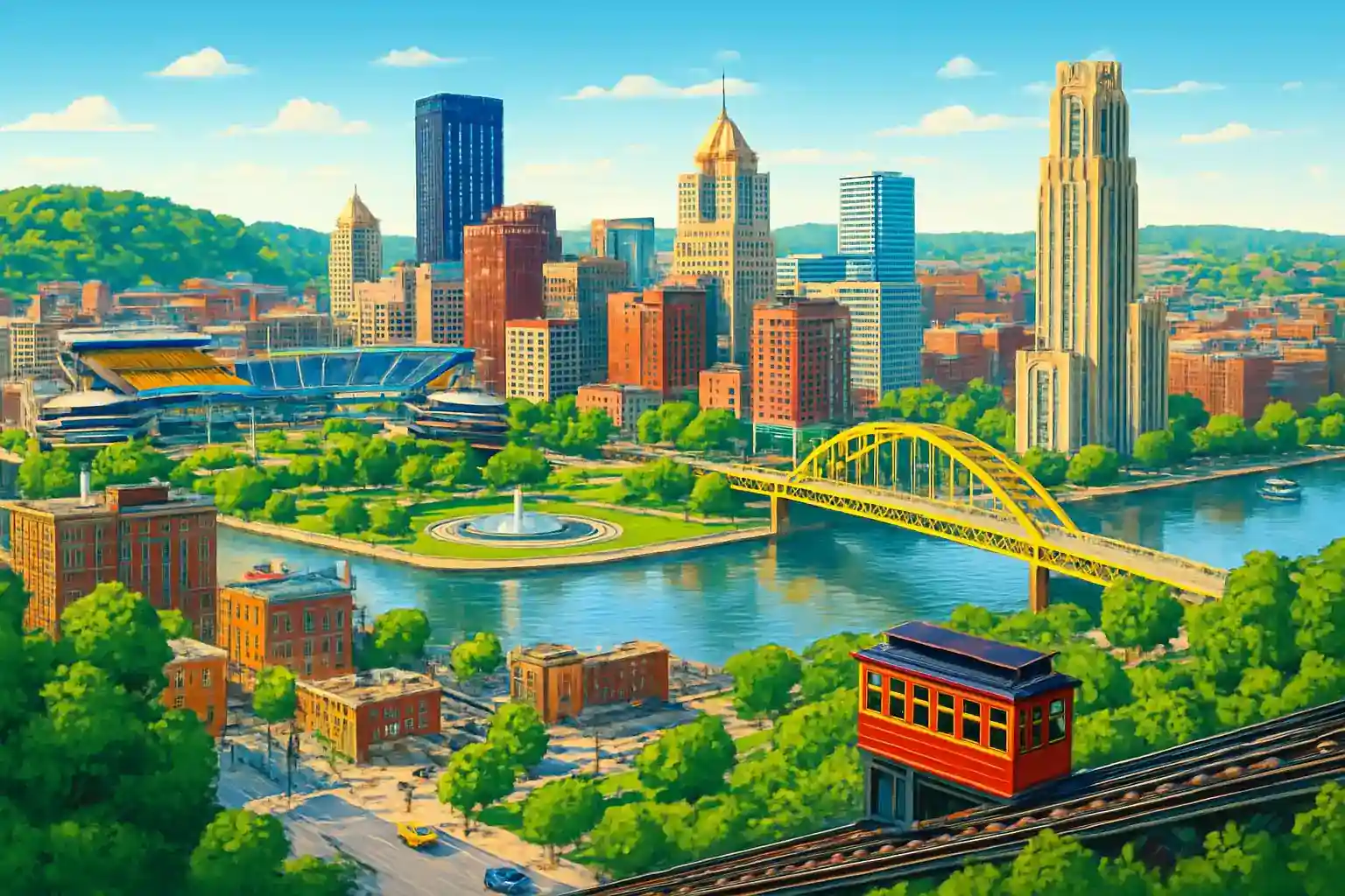Hämta bilen direkt vid ankomst i Landside Terminal – alla 8 uthyrare finns samlade i Rental Car Center. Kör I-376 East mot Pittsburgh och ta avfarten för Mount Washington för en spektakulär stadsvy redan vid ankomst. Boka på förhand under Steelers och Pirates säsonger – efterfrågan är hög och priserna stiger.