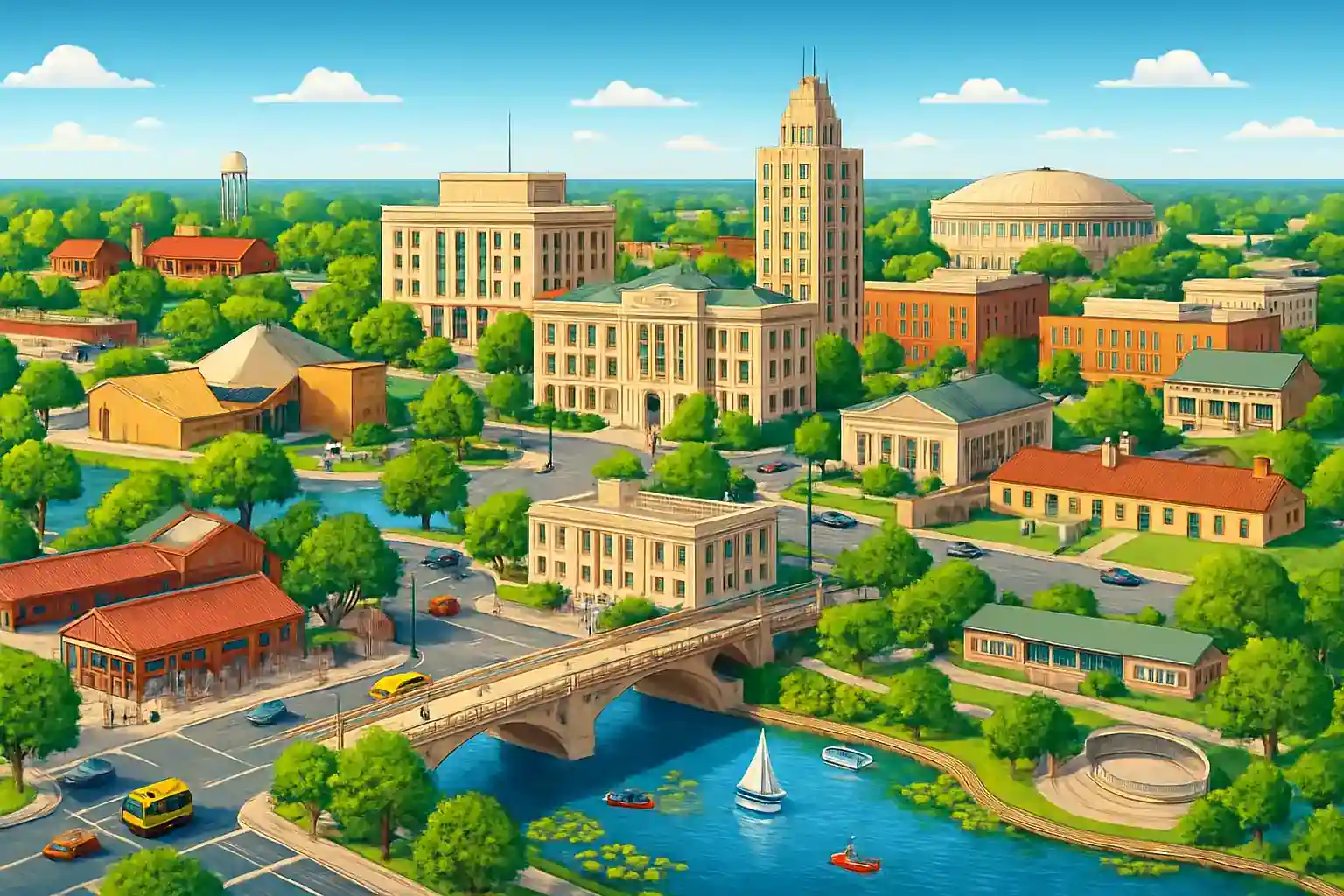 Det tar ca 10 minuter, ungefär 6 km via Mathis Field Road och Knickerbocker Road. Är det värt att hyra bil i San Angelo? Absolut – kollektivtrafiken är mycket begränsad och bil är nödvändigt för att nå sevärdheter som San Angelo State Park, O.C.