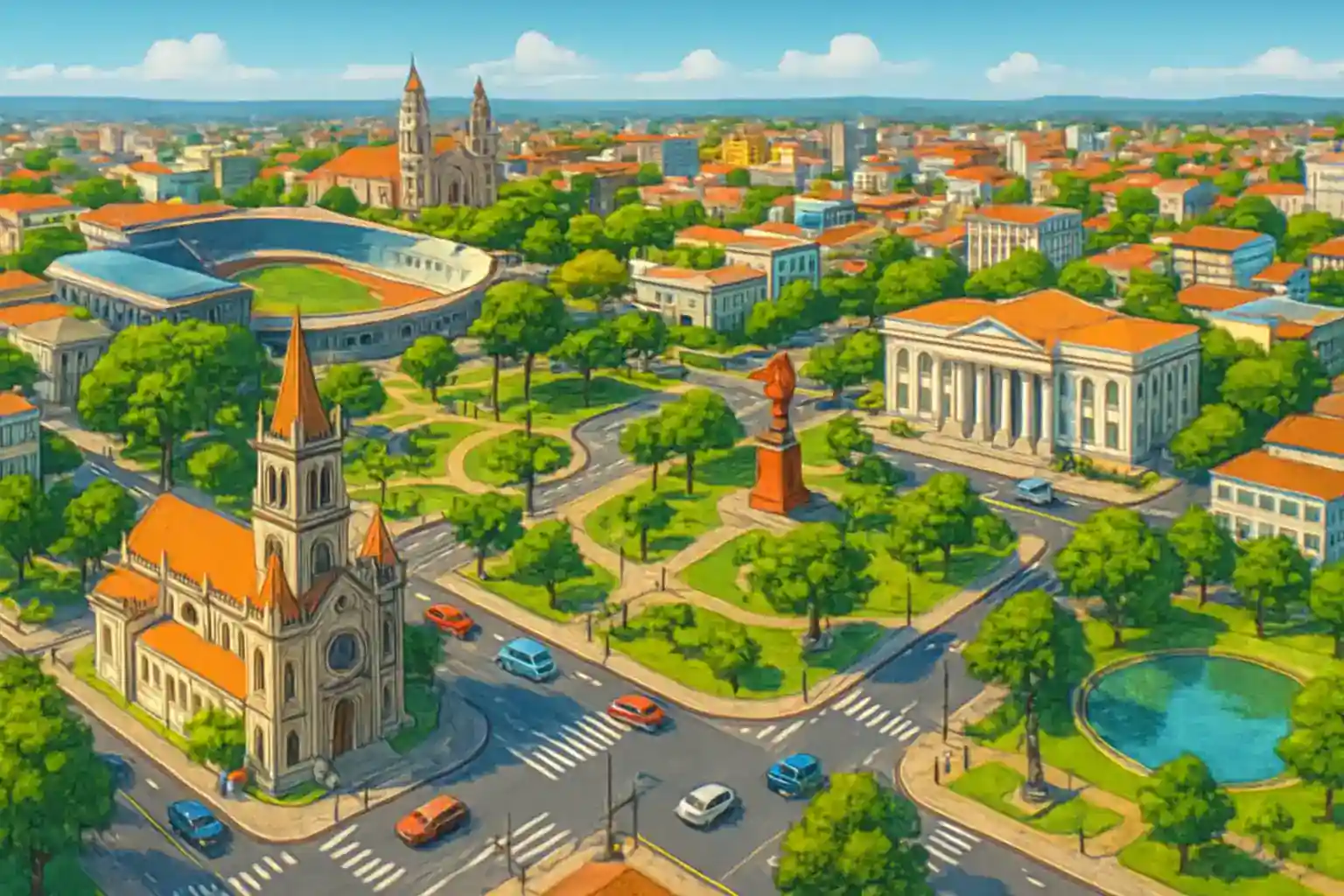 Jardim Santa Helena är ett av stadens nyare bostadskvarter med enkel access till SC-310-vägen som förbinder med grannstäderna Votuporanga (45 km) och Jales (55 km). Boka bil i förväg – utbudet är begränsat med bara en uthyrare på plats. Ta väg SP-310 söderut mot Votuporanga för utflykter till Parque Municipal.
