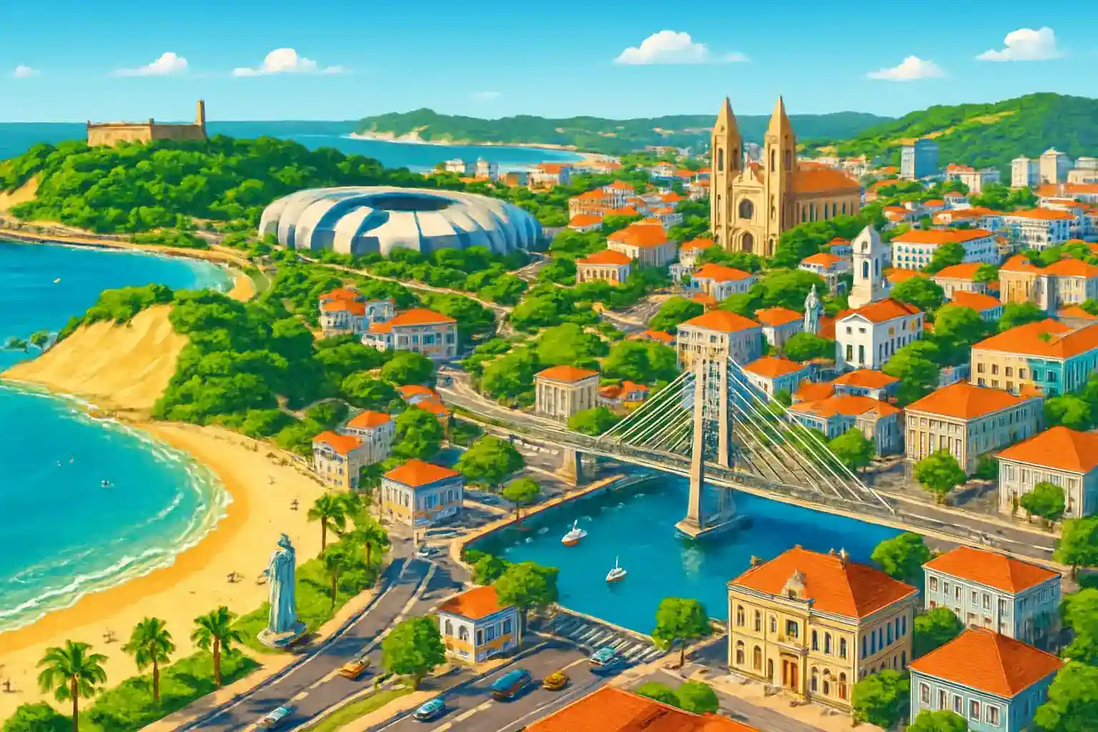 Mossoró i väster ligger ca 280 km bort längs BR-304, ett populärt mål för saltlandskapen. Hyrbilarnas disk ligger i ankomsthallen på bottenvåningen – gå dit direkt efter bagageuttaget. Välj SUV om du planerar att besöka Genipabu-dynerna norr om Natal, ca 50 km från flygplatsen.
