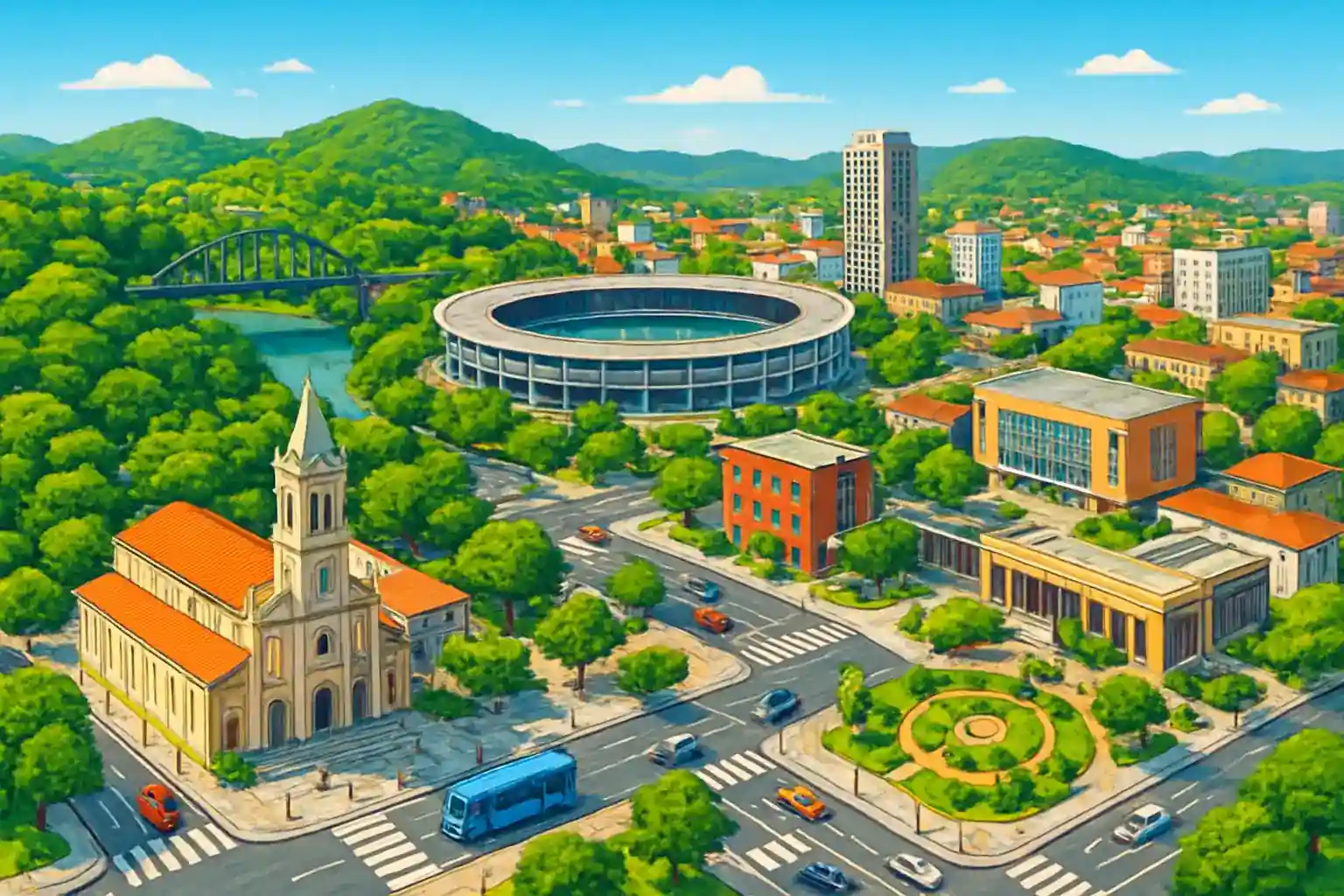 Volta Redonda är Brasiliens stålstad, belägen i södra Rio de Janeiro-staten vid Rio Paraíba do Sul, ca 130 km väster om Rio de Janeiro. Med 2 uthyrare i centrum kan du smidigt hyra bil för att utforska Médio Paraíba-regionen. Via Presidente Dutra (BR-116) når du Rio de Janeiro på ca 1,5 timme och São Paulo på 3,5 timmar.